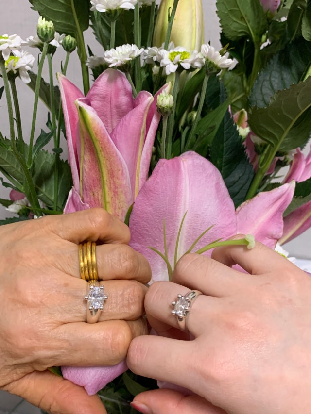 3년 전 제 생일날에 할머니가 용돈을 주셔서 하이메에서 사고 싶었던 jenna 반지를 샀었는데, 할머니가 반지 너무 예쁘다고 하시더라고요! 그래서 올해 할머니 생신 선물로 맞춰드렸어요. 할머니는 jenna보다 조금 더 큐빅이 크고 볼드한 emma 반지가 맘에 드시다고 하셔서 두근거리는 마음으로 택배를 기다렸네요! 정말 정말 예쁘다고 마음에 드셔하셨어요! 할머니랑 커플링하기에도 너무 클래식하고 예쁜 디자인…☺️ 덕분에 할머니랑 같이 예쁜 추억, 예쁜 커플링 잘 맞추었습니다! 감사해요