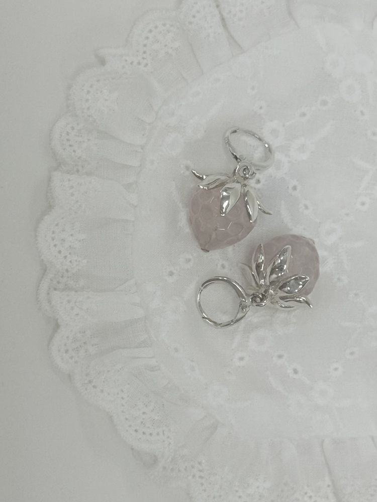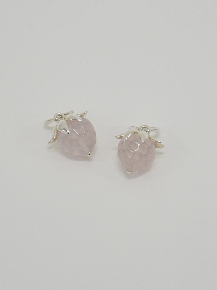 큰 사이즈의 좋은 로즈쿼츠를 딸기 모양으로 연마하여