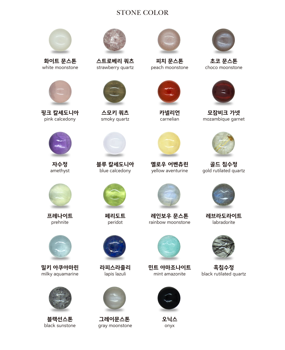 스톤마다 컬러톤과 내포물, 유색효과가